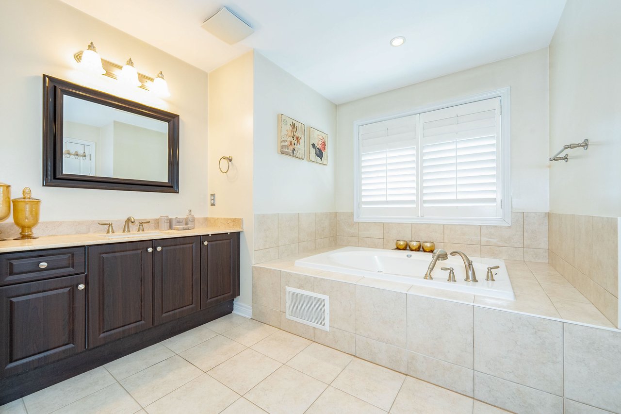 Discover the epitome of luxury living in this meticulously customized home, situated on a desirable pie-shaped lot in Oakvilles prestigious Bronte Creek area. Featuring a spacious double car garage, this exceptional residence boasts 4,500 sq. ft. of refined living space and a backyard ideal for a pool, surrounded by tall cedar trees for ultimate privacy, and enhanced with a BBQ gas line.Step inside to be greeted by soaring 9' ceilings and an impressive open-to-above entryway. The main floor showcases an elegant 11' ceiling office with French doors. Rich hardwood floors and expansive windows adorned with California shutters contribute to the homes sophisticated ambiance.At the heart of the home is a stylish eat-in kitchen featuring dark, elegant cabinetry, granite countertops, premium stainless steel appliances, and a cozy breakfast bar. This space flows seamlessly into a sunlit family room complete with a gas fireplace.The second floor is home to the master bedroom, a true sanctuary with a spa-like ensuite offering double sinks, marble countertops, a Jacuzzi tub, and a sleek glass shower. Dual "his and hers" closets with organizers complete this retreat. Three additional bedrooms are also located on this leveltwo sharing a Jack & Jill bathroom, and a fourth enjoying its own private 4-piece bathroom.The professionally finished basement offers a versatile space with a spacious rec room highlighted by pot lights, a cozy sitting area with a fireplace and built-in shelves, an extra bedroom, a 3-piece bathroom, a pantry room, a large storage area, and four additional seasonal closets. Perfectly positioned near Bronte Creek, parks, and ravine trails, this home is conveniently close to schools, Oakville Hospital, highways, transit, and more. This exquisite property combines luxury, functionality, and an ideal locationmaking it the perfect place to call home.